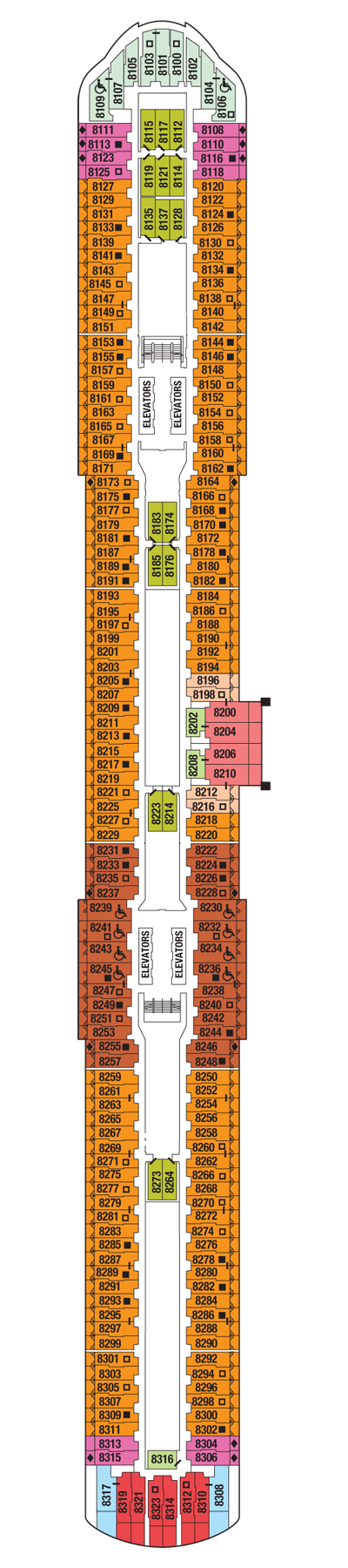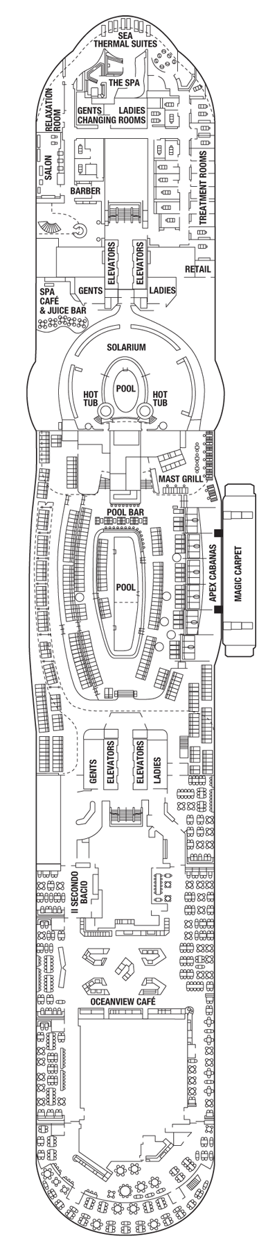 The industry-first Magic Carpet is both the best way to take in spectacular views and the most exciting place to be. By changing function and location, it provides an incredible array of visual perspectives and a distinct experience on every deck it visits.