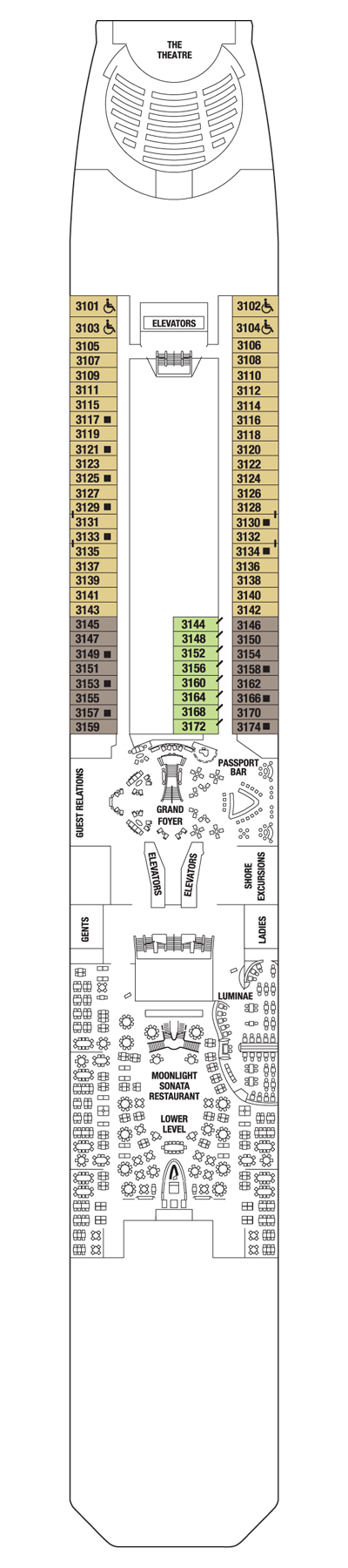 Our stunning foyer greets you with a spectacular onyx staircase, marble floors and the first panoramic ocean-view glass elevators at sea.