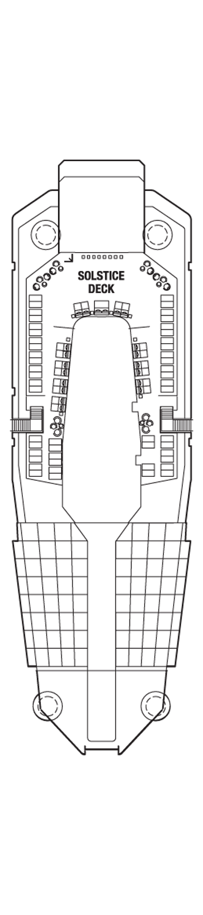 When you arrive at the highest point on the ship, you won't be disappointed. Whether you're looking for the ideal spot to do some early morning yoga, stretch out on a canopied lounge bed, or for the best view of the beautiful starry sky to cap off another magical evening aboard, The Solstice Deck is where your search ends and the relaxation begins.