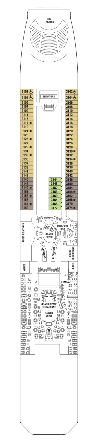 Our stunning foyer greets you with a spectacular onyx staircase, marble floors and the first panoramic ocean-view glass elevators at sea.