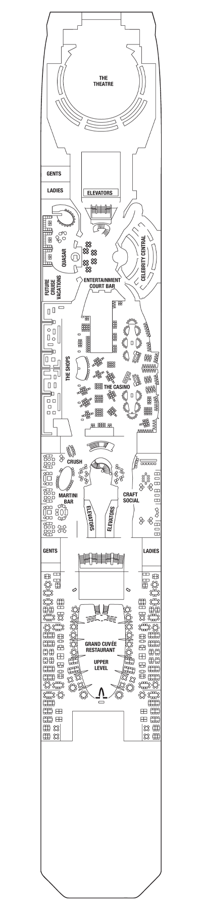For an evening of lively, spontaneous entertainment, the versatile Celebrity Central is the perfect destination. Catch a late night comedy show, live musical performances, or a great movie in a comfortable, casual atmosphere.