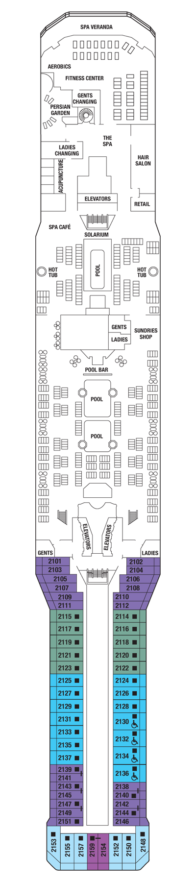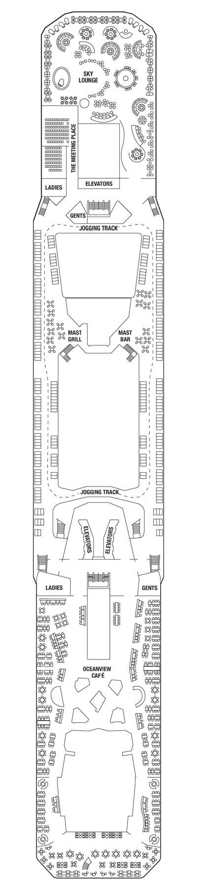 A freshly manicured lawn on the highest deck. Enjoy casual outdoor activities in a decidedly Country Club atmosphere, and let the grass between your toes take you places no cruise has gone before.
