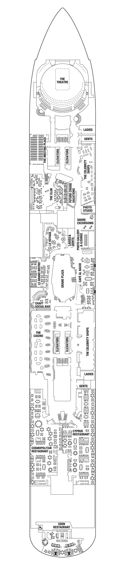 A transformative space to gather. Experience a majestic, open, three-story venue inspired by the piazzas of Italy and the invigorating energy of everyone coming together to savor a taste of the good life. Home to our incredible specialty restaurants, along with our popular Martini Bar, Café al Bacio, and Craft Social Bar. The Grand Plaza is the ultimate gathering place on Celebrity Beyond.