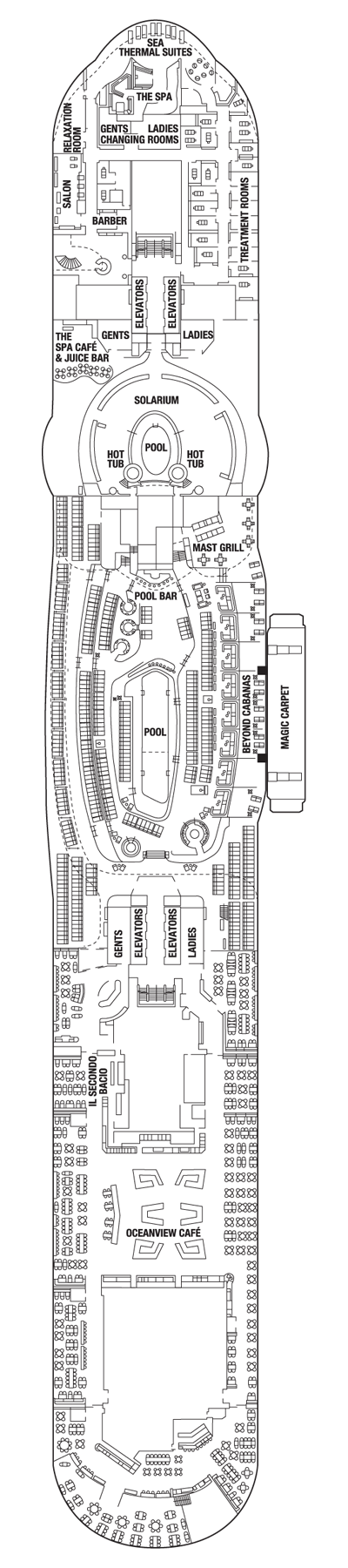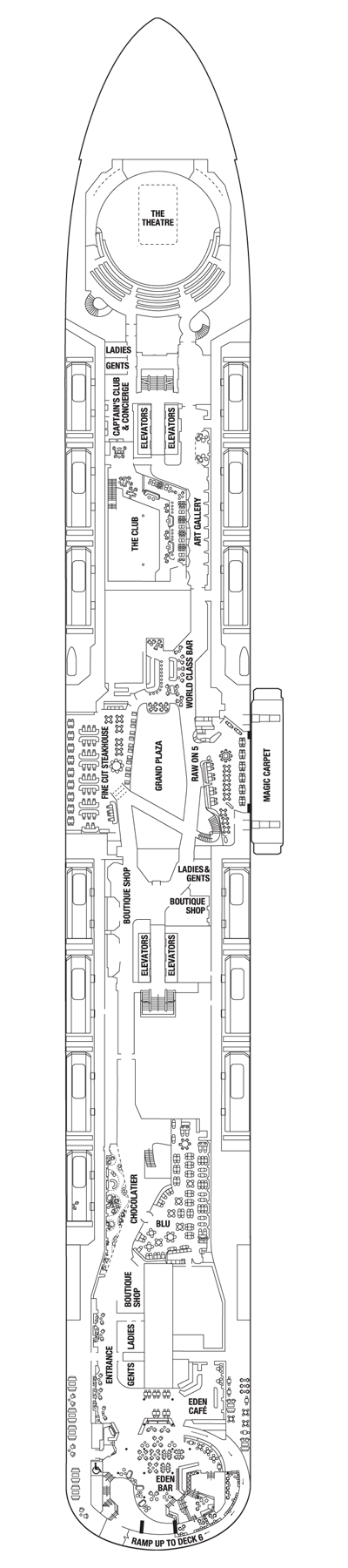 The industry-first Magic Carpet is both the best way to take in spectacular views and the most exciting place to be. By changing function and location, it provides an incredible array of visual perspectives and a distinct experience on every deck it visits.